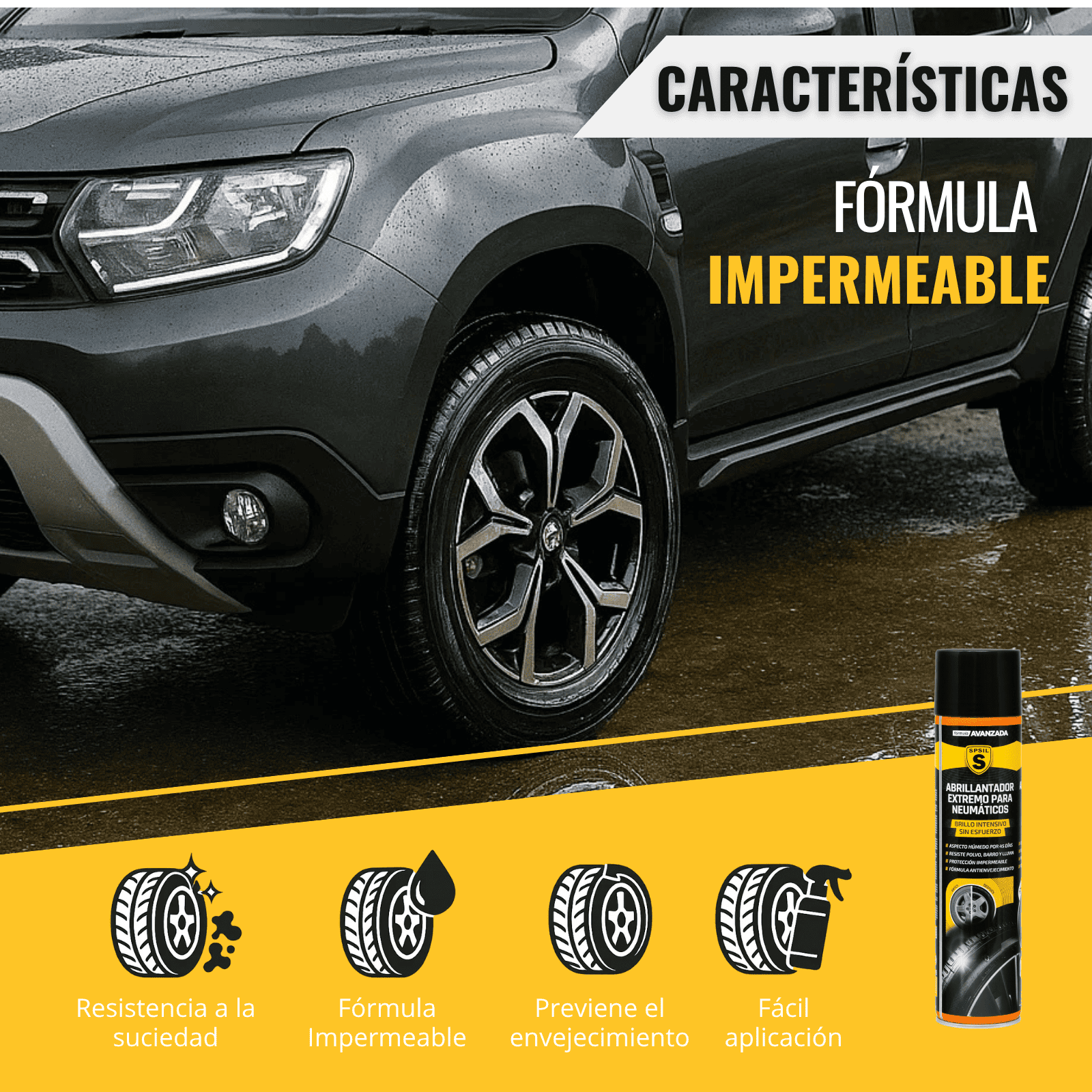 - ¿Puedo usarlo en otras partes del vehículo? Este producto está formulado específicamente para neumáticos; para otros acabados, consulta nuestros productos especializados.