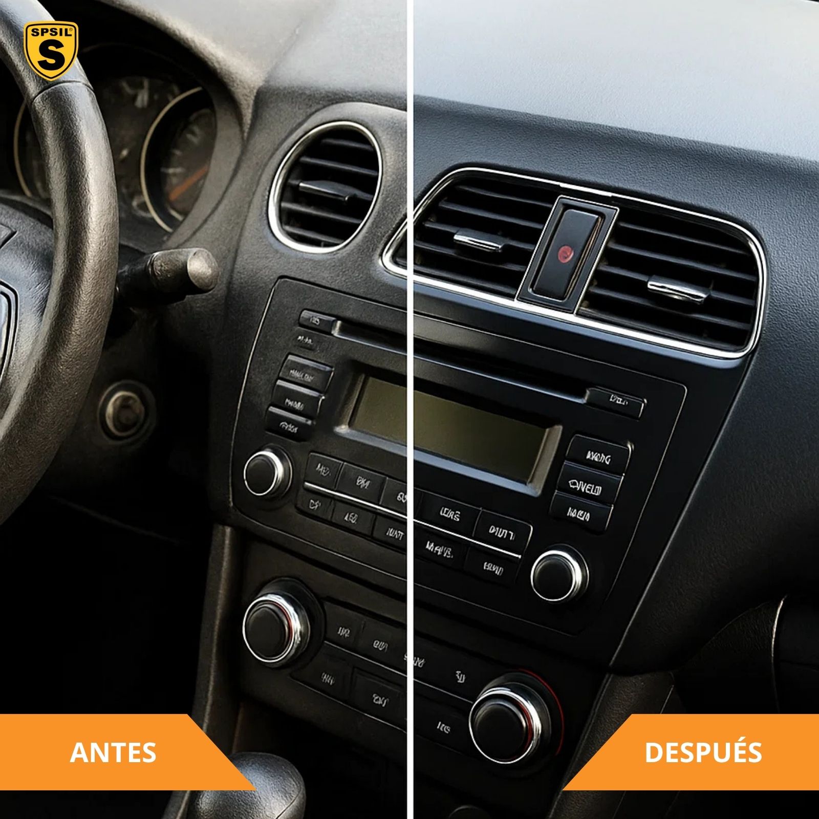 - Protección Hidratante: No solo abrillanta, sino que también hidrata. Esta doble acción ayuda a prevenir el agrietamiento y la pérdida de color, prolongando la vida útil de los plásticos y neumáticos.
