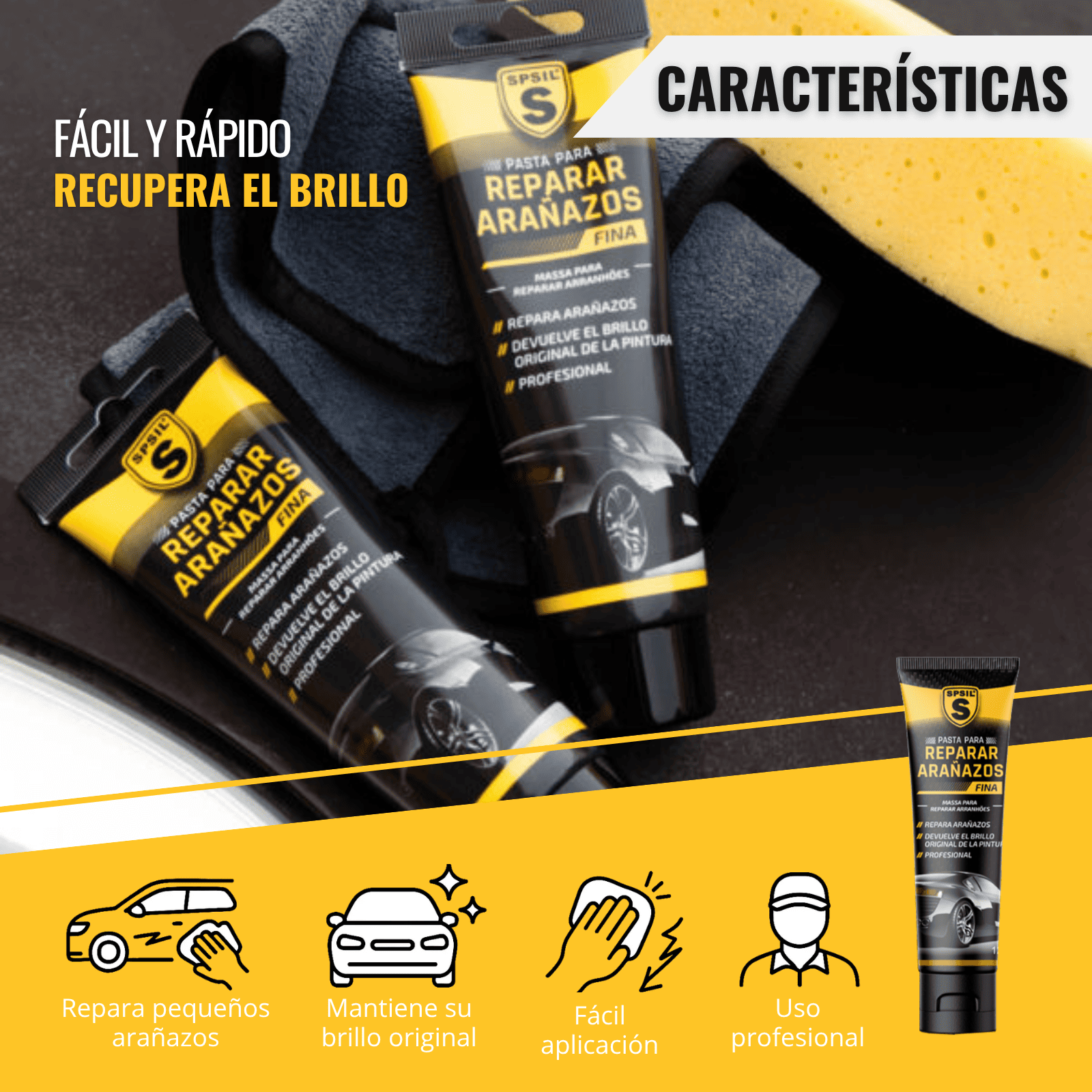 Además, la Pasta para Reparar Arañazos Fina de SPSIL no solo repara los arañazos finos sino que actúa como una barrera protectora para futuros pequeños arañazos e imperfecciones.
