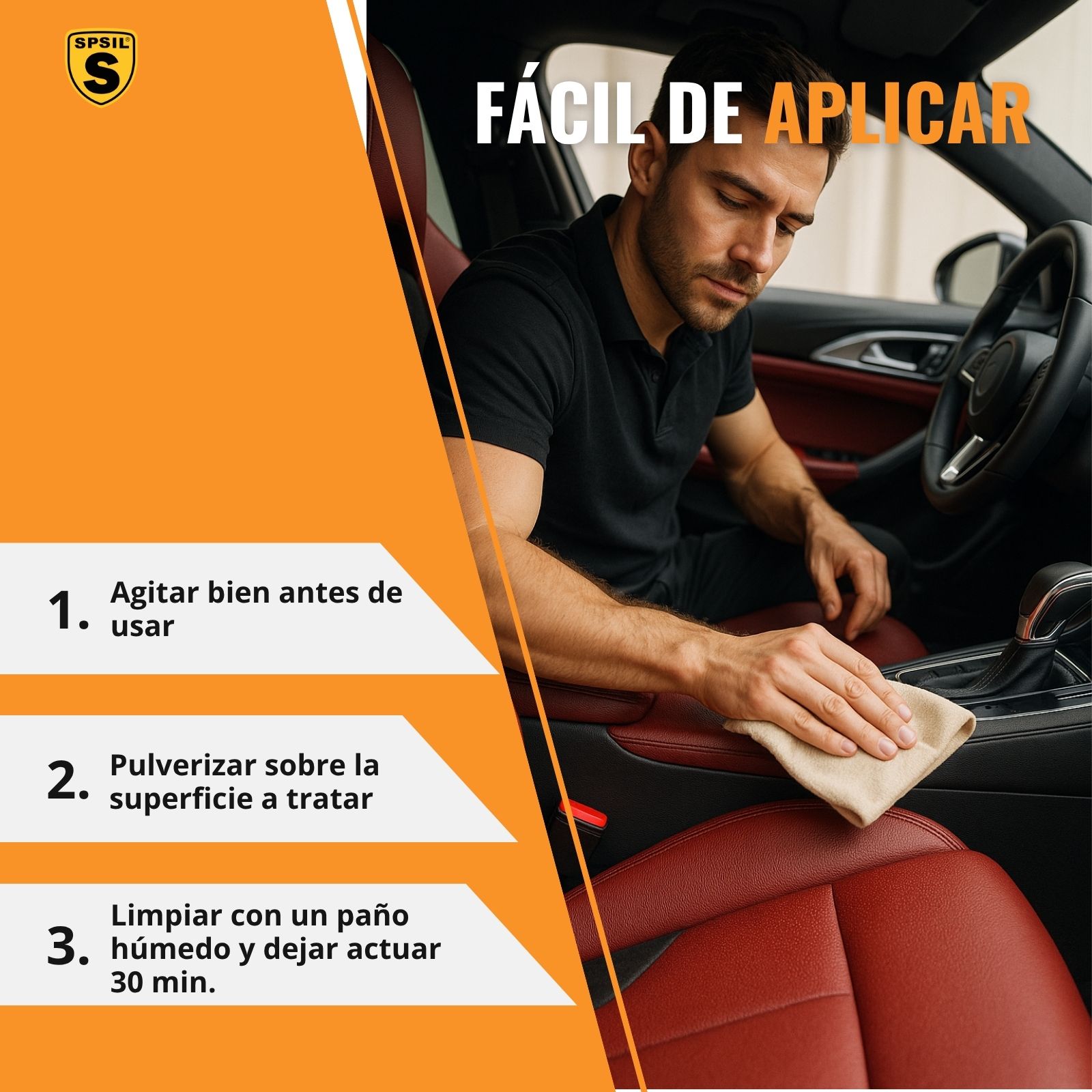 - Hidratación Superior: Nutre el cuero, la piel y los acabados de goma de tu vehículo, siempre listos para deslumbrar.