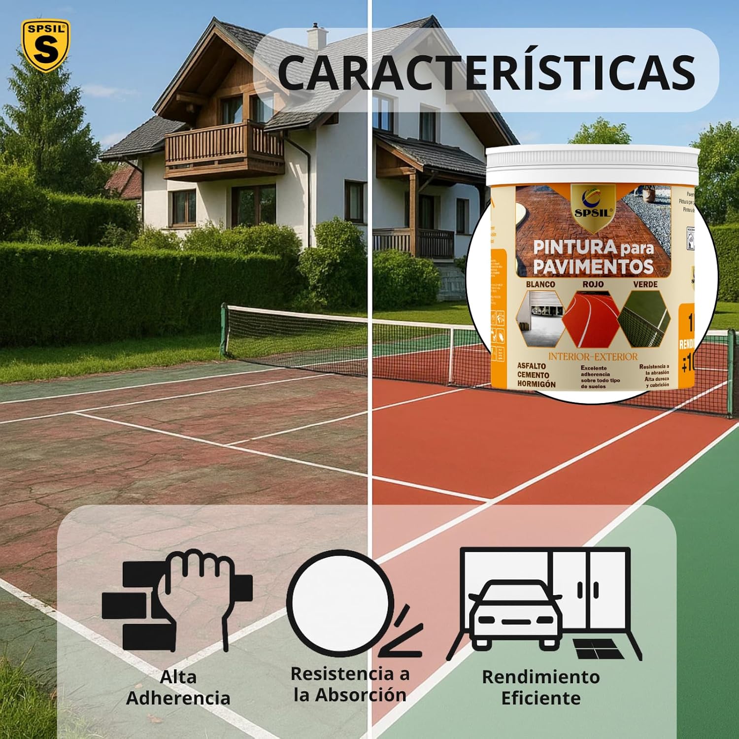 Descubre un mundo de colores y durabilidad con la Pintura Especial para Pavimentos de Spsil. Diseñada para transformar tus espacios, esta pintura no solo embellece suelos, sino que también ofrece una resistencia excepcional. Con una amplia gama de colores, desde un blanco radiante hasta un rojo vibrante y un gris sofisticado, cada tonalidad ha sido cuidadosamente formulada para mantener su intensidad y brillo a lo largo del tiempo. Esta pintura se adhiere firmemente a superficies de asfalto, cemento y hormigón, asegurando un acabado duradero que resiste el tráfico intenso y las condiciones climáticas adversas.