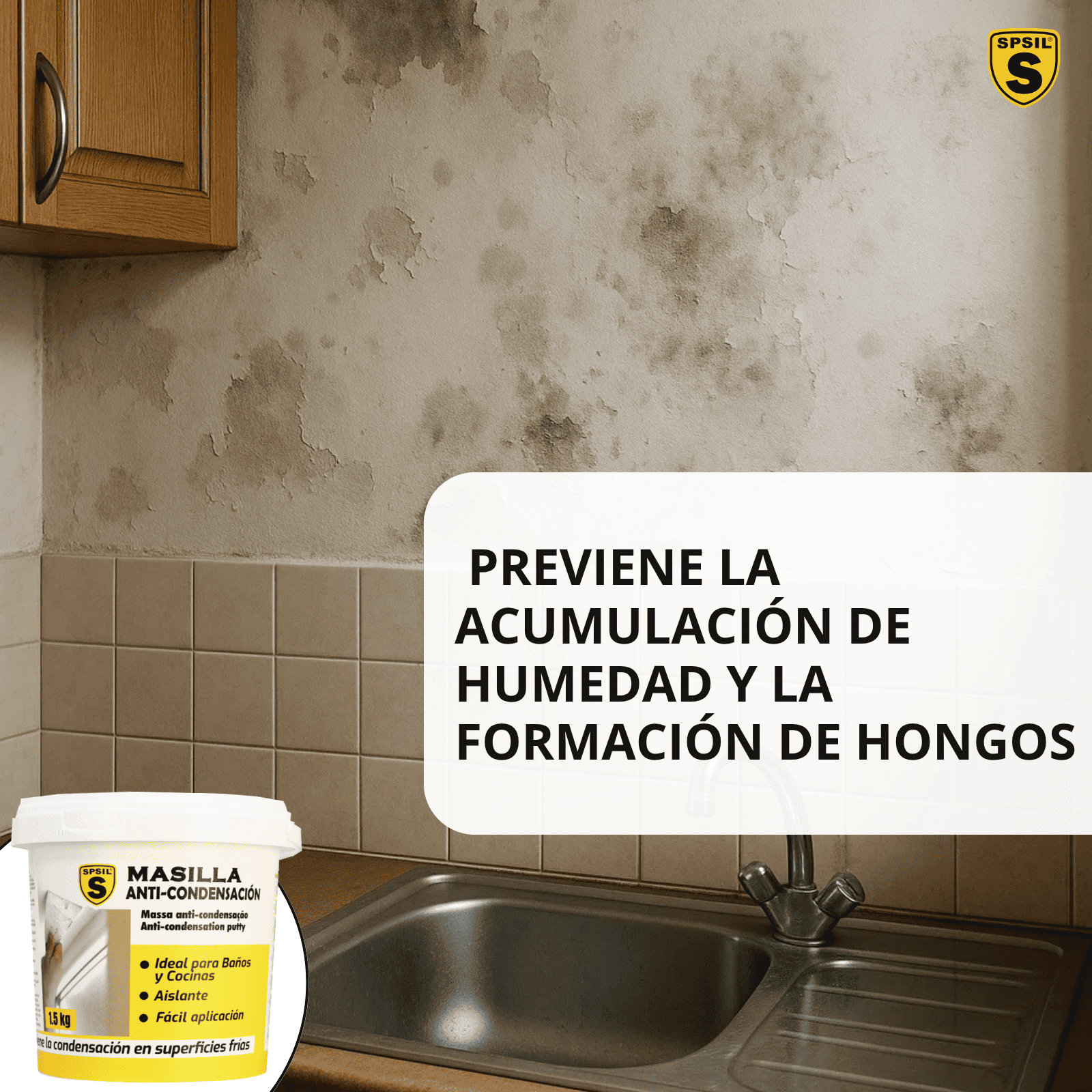 Protege tus espacios de la humedad y el moho con la Masilla Anti-Condensación SPSIL. ¡Solución eficaz y duradera!