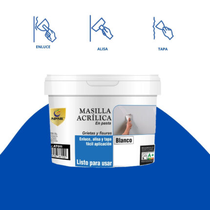 AT013 Masilla acrílica SPSIL 1 kg para enlucir y reparar grietas. Fácil aplicación, secado rápido y acabado perfecto para superficies lisas. Ideal para reparaciones duraderas y efectivas.