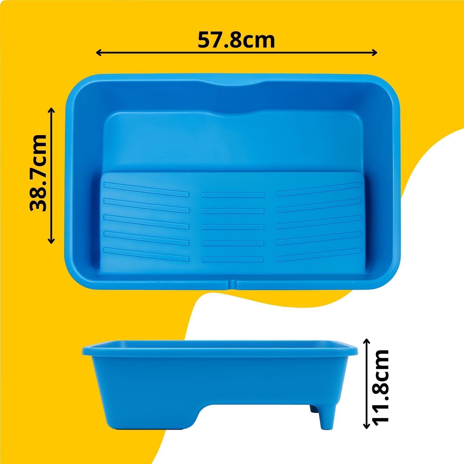 La bandeja mide 57,8 cm de largo, 38,7 cm de ancho y 11,8 cm de alto, lo que le permite cubrir grandes superficies en una sola pasada.