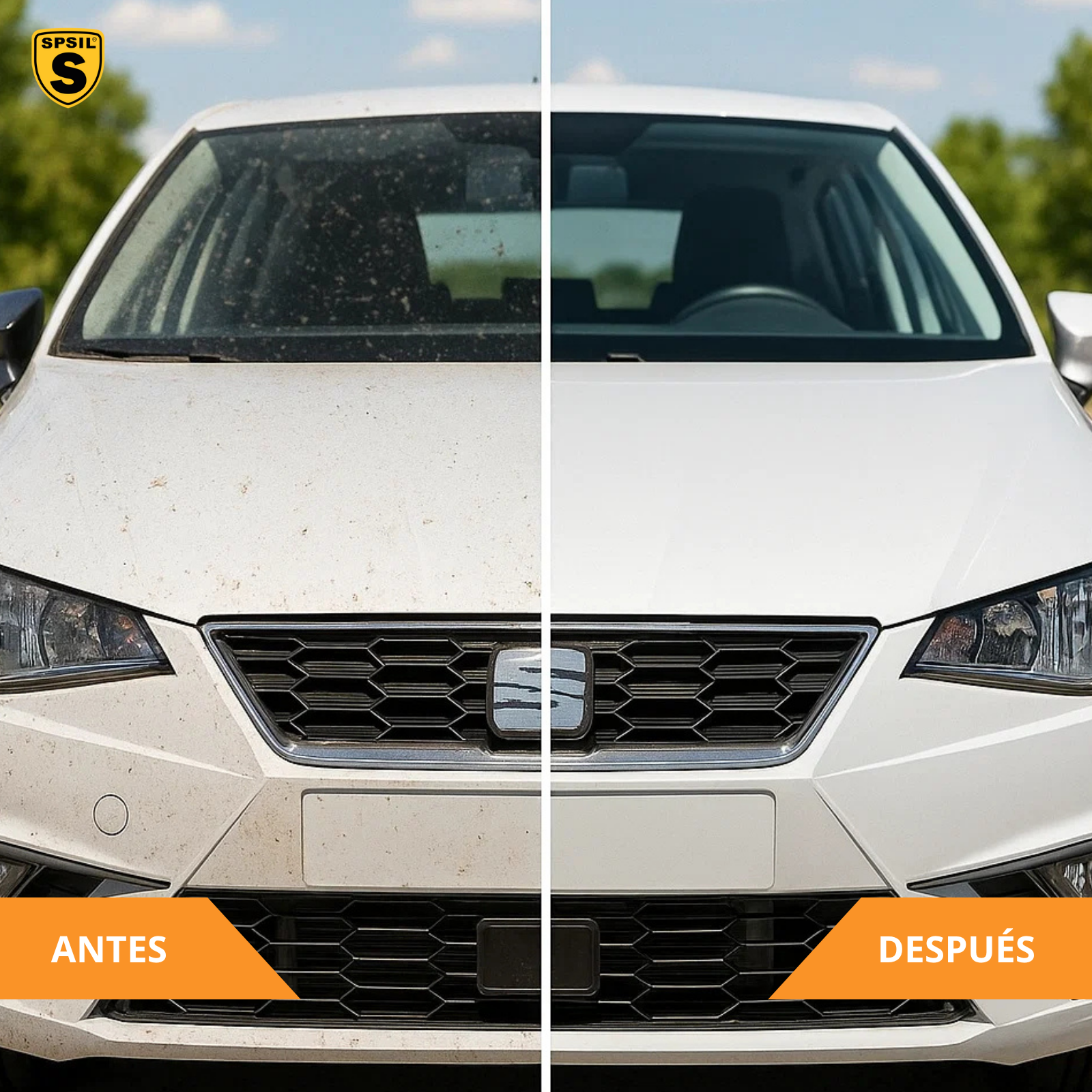 - Devolución del Brillo: A diferencia de otros limpiadores que solo eliminan la suciedad, el Limpiador de Insectos SPSIL devuelve el brillo original a la pintura de tu vehículo. Esto no solo mejora la apariencia, sino que también protege la superficie de futuros daños.