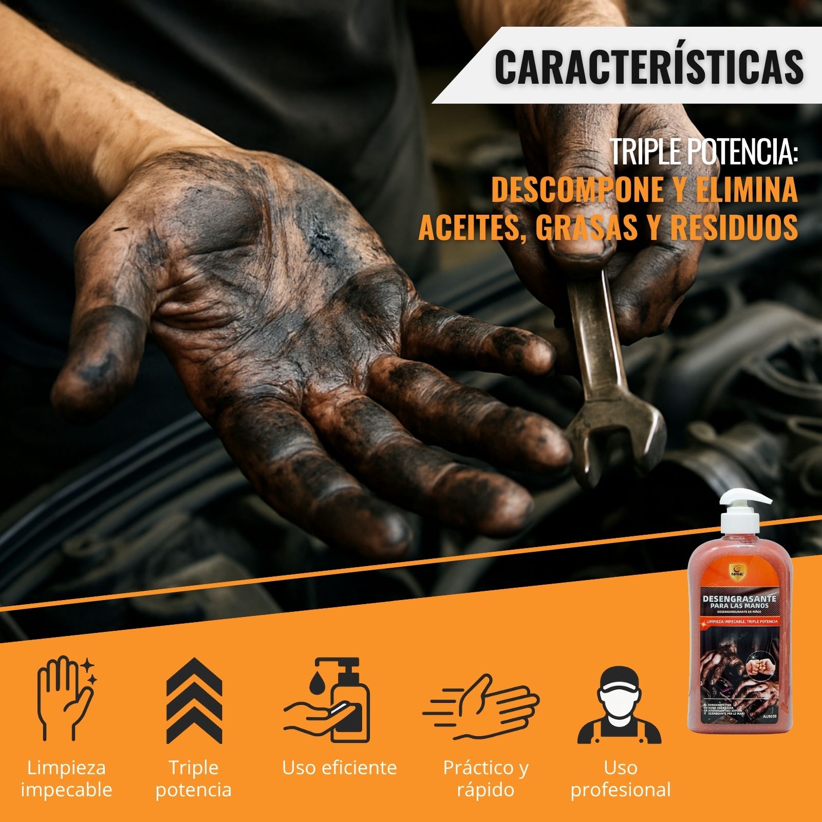 Absolutamente. La fórmula de triple potencia está diseñada para descomponer incluso las grasas más difíciles en una sola aplicación, lo que lo convierte en una herramienta esencial para quienes trabajan con sus manos en entornos sucios.