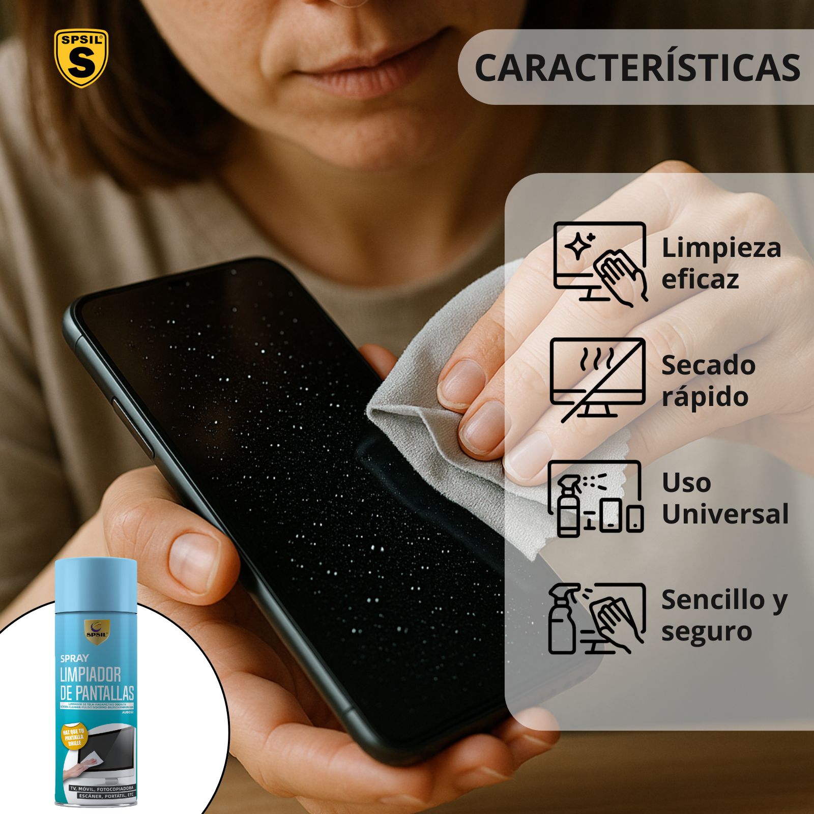 Limpiador de Pantallas Spray SPSIL – Brillo instantáneo para tus pantallas